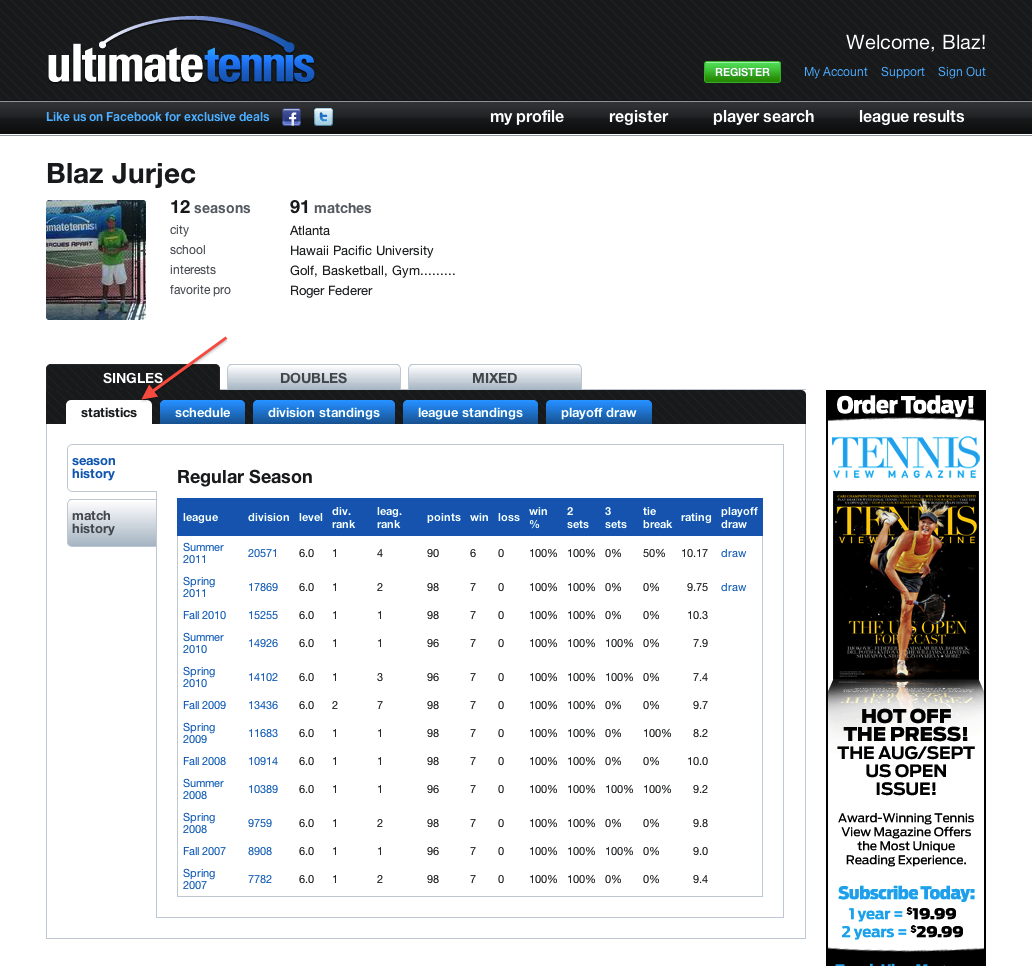 If you're new to Ultimate Tennis the screen shots below will show you how to navigate the site to get the most out of your league experience.